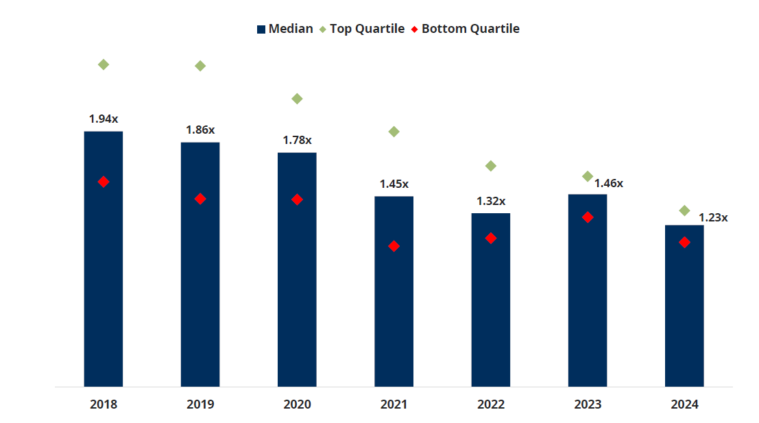 CVs TVPI by Vintage (Top Quartile, Median & Bottom Quartile)